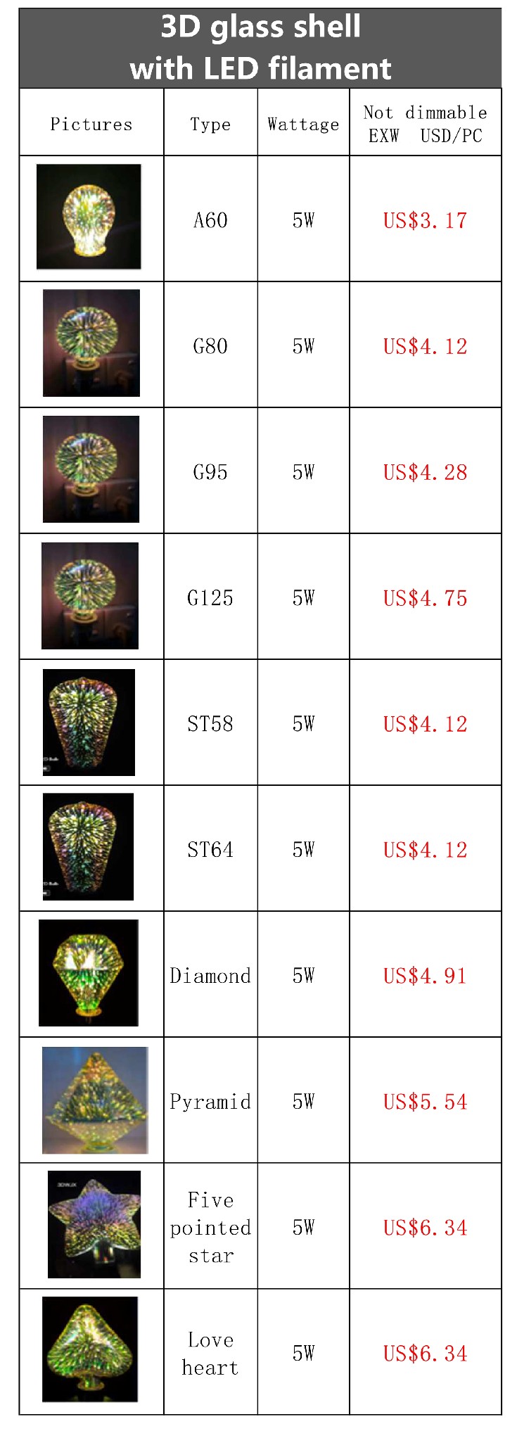 20) 3D Glass Shell with LED Filament---MOQ: 100pcs per item