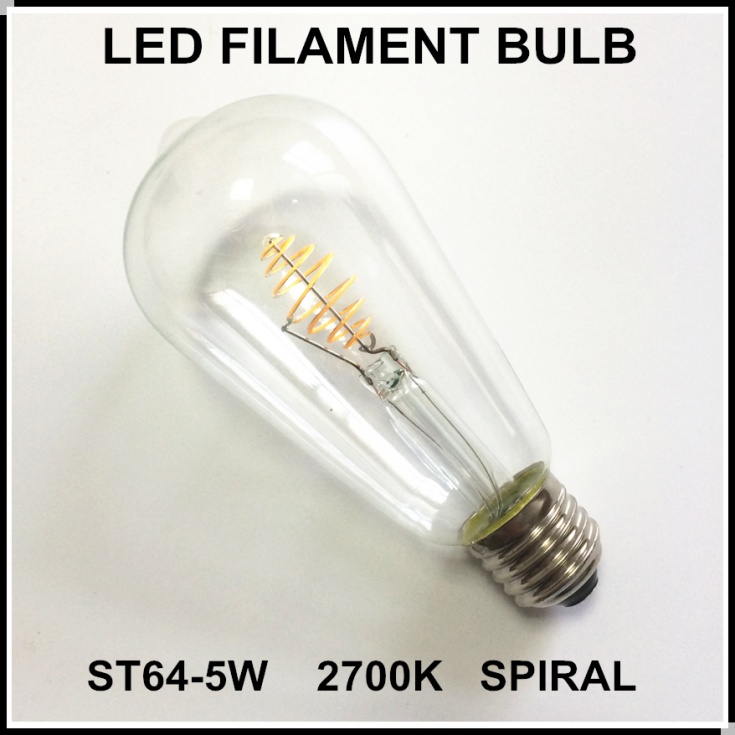 LED filament bulb ST64-5W with spiral filament and clear glass shell