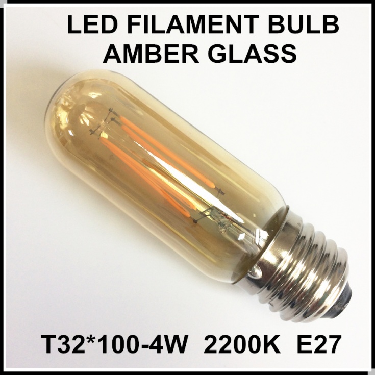 LED filament bulb T32*100, 2200K, 4W, E27 with amber glass