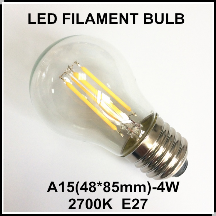 LED filament lamp, A15, 4W, with clear glass shell